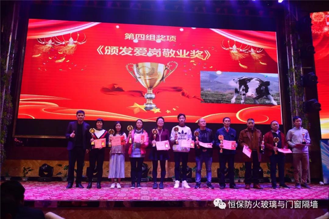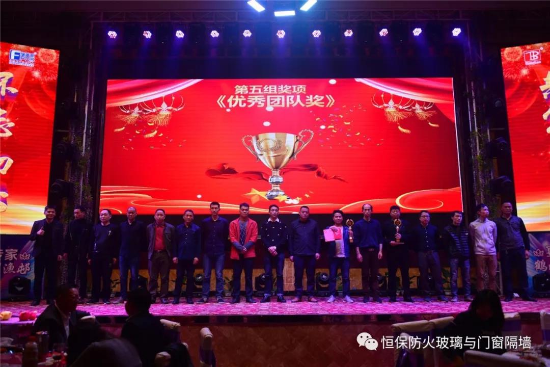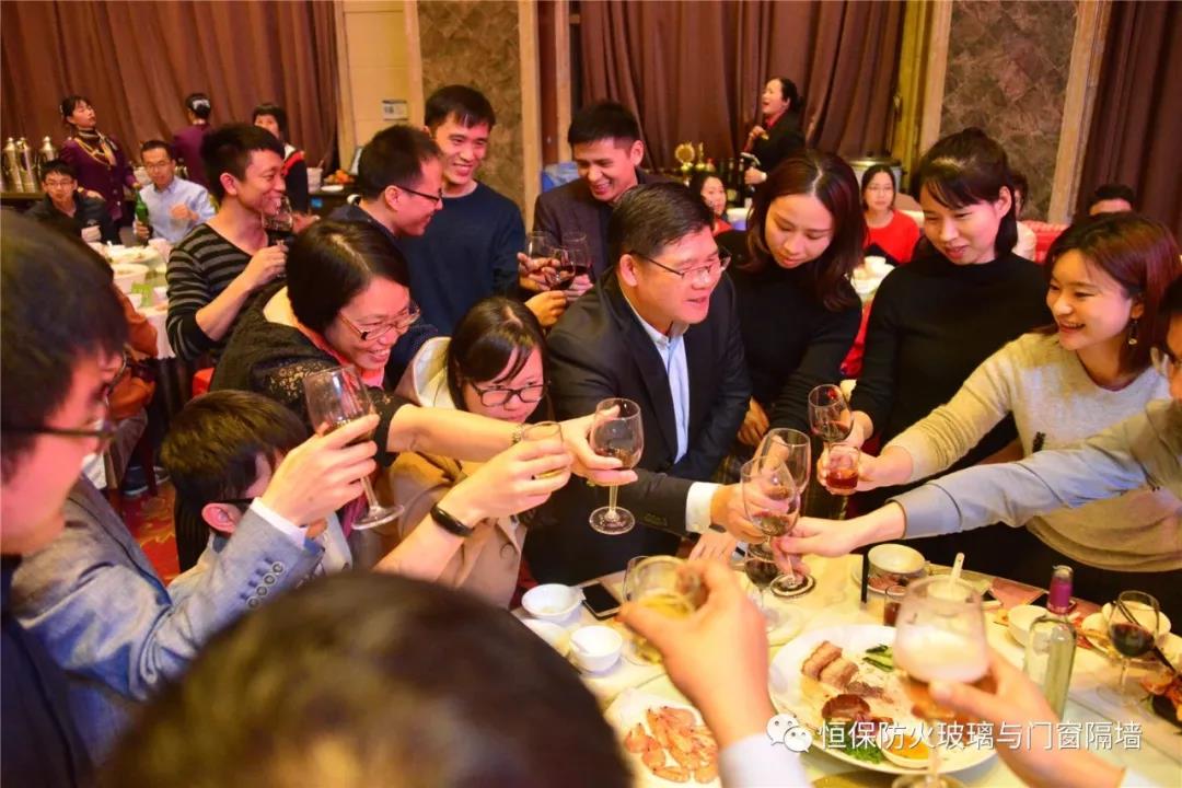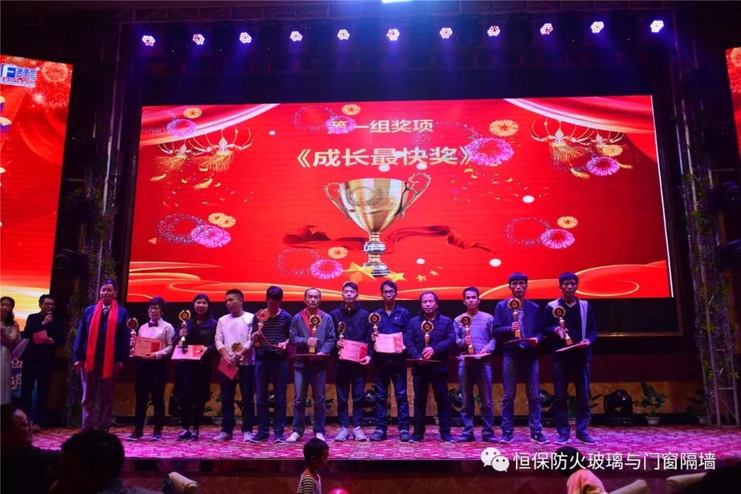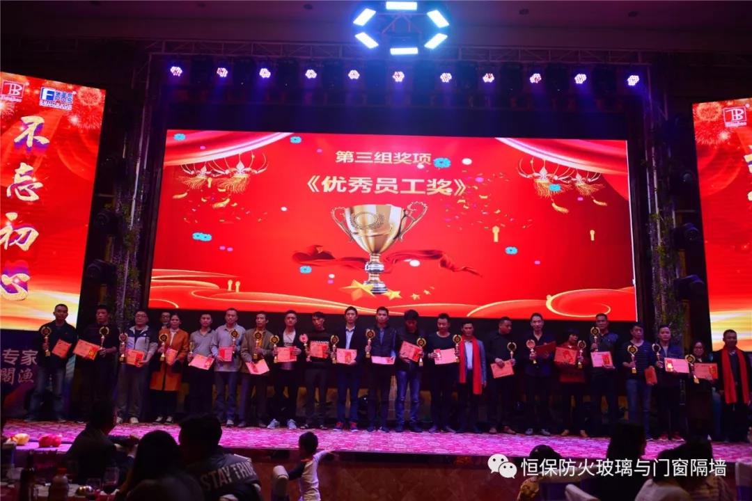 19:30分,恒保年會在鼓舞飛揚中拉開了帷幕,首先是恒保總經理陳沃林先生做年終致辭,陳總回顧了2018年所取得的成績與不足,并提出了2019年恒保要全力以赴,不忘初心,繼續奮斗,再創佳績的戰略方針。2018年是恒保跨越發展的一年。全體恒保家人,團結一心,艱苦奮斗,全力實現了公司既定的年度目標,同比各項重要指標增長逾80%2018年我們大力引進新設備,開發新產品10多項,產品通過國家檢測20多項 ,至此,恒保出品已擁有373C認證,158份檢驗報告,成為行業內公認通過國家檢驗、認證最多的防火玻璃門窗企業;2018年在行業各類權威獎項評比中,榮獲“全國鋁門窗幕墻展 年度星品獎”、榮獲“新玻網 門窗玻璃十強企業”、陳沃林總經理榮獲鶴山市工商聯系統“工匠之星”稱號、陳沃林總經理榮獲第五屆中國玻璃行業“玻璃工匠”稱號、榮獲第三屆建筑門窗金軒獎“最具創新力配套產品”、榮獲第三屆建筑門窗金軒獎“最具發展潛力企業”、榮獲中國門窗幕墻行業“科技進步推動獎”等十多項獎項。2019年我們將持續優化各部門管理,提高員工工作技能、提高生產管理水平、提高生產效率、提高綜合管理能力,減少物料損耗,減少出錯率。加強精密型材、新型防火門窗的開發,滿足不同客戶的需求。2019年恒保上下一心、同心協力、不忘初心,共筑未來,為實現中國平安夢、世界平安夢繼續奮斗!