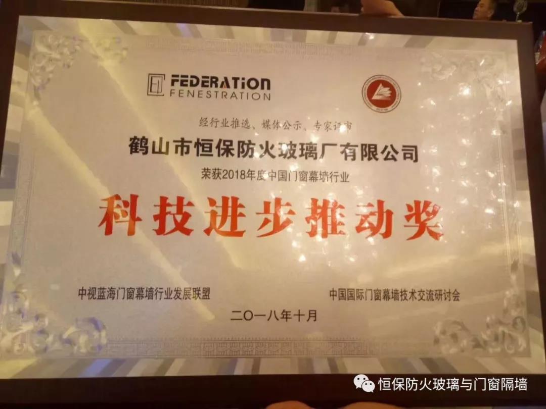 鶴山恒保公司在此次交流研討會中,獲大會專家評審并頒發(fā)2018年度中國門窗幕墻行業(yè)“科技進(jìn)步推動獎(jiǎng)”。