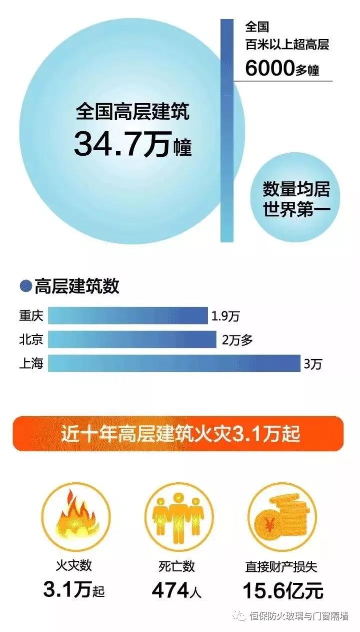 公安部消防局通報了中國高層建筑火災的數據。數據顯示,全國擁有8層以上、超過24米的高層建筑34.7萬幢,百米以上高層6000多幢,數量均居世界前位。
