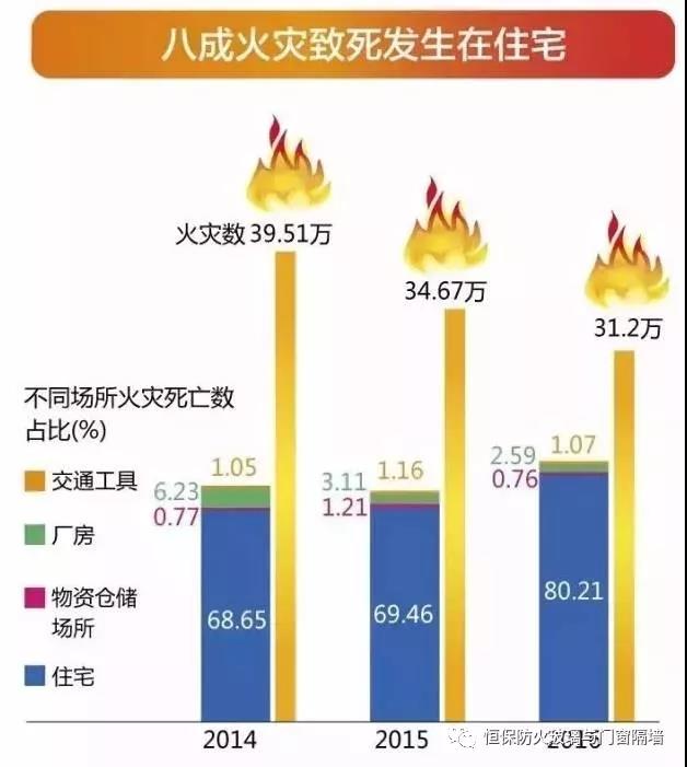 近十年全國共發生高層建筑火災3.1萬起,死亡474人,直接財產損失15.6億元。近三年來,火災致死發生在住宅的比例逐年升高,2016年有1269人在住宅火災中死亡,占火災致死總數的80.21%。