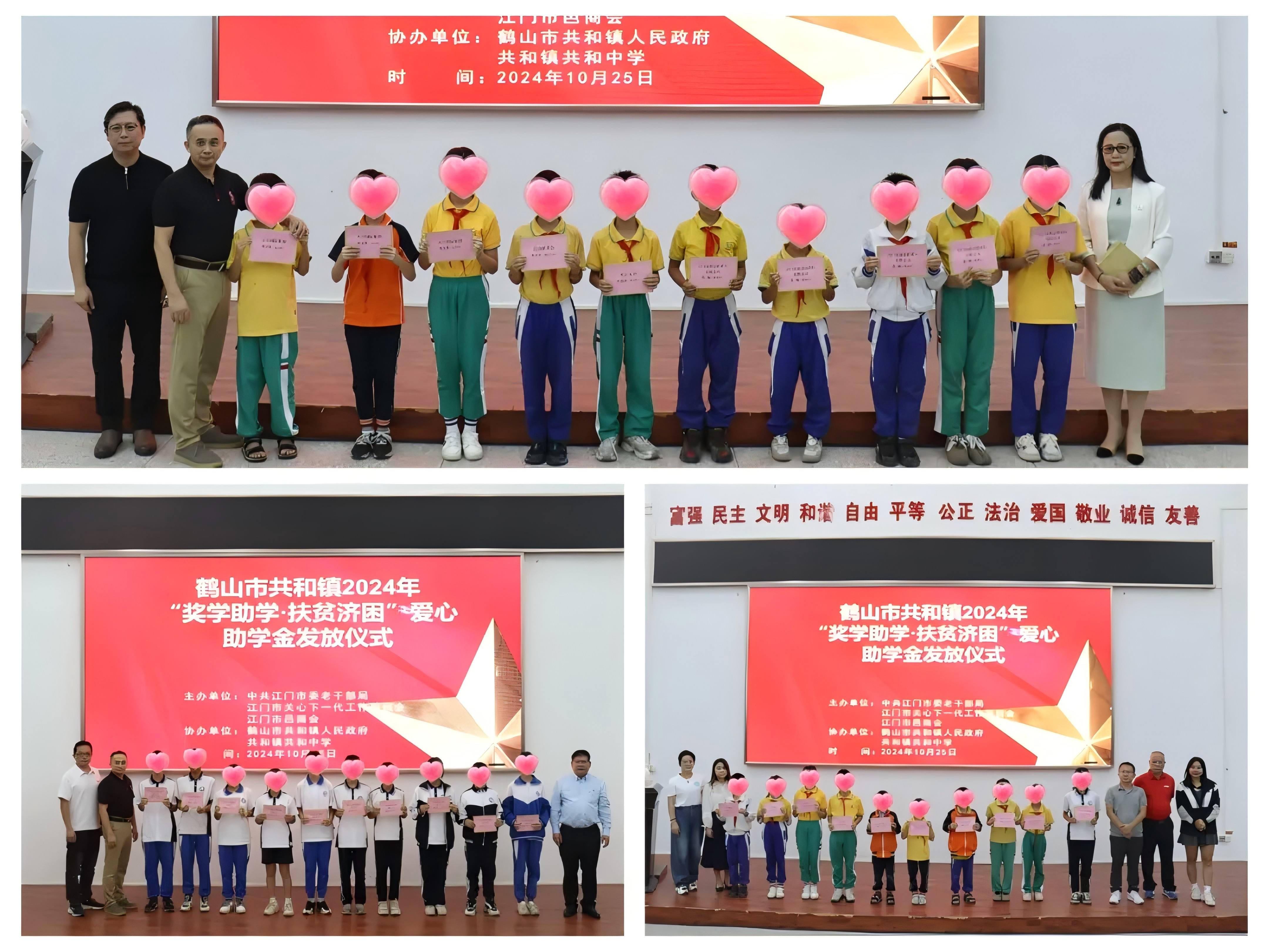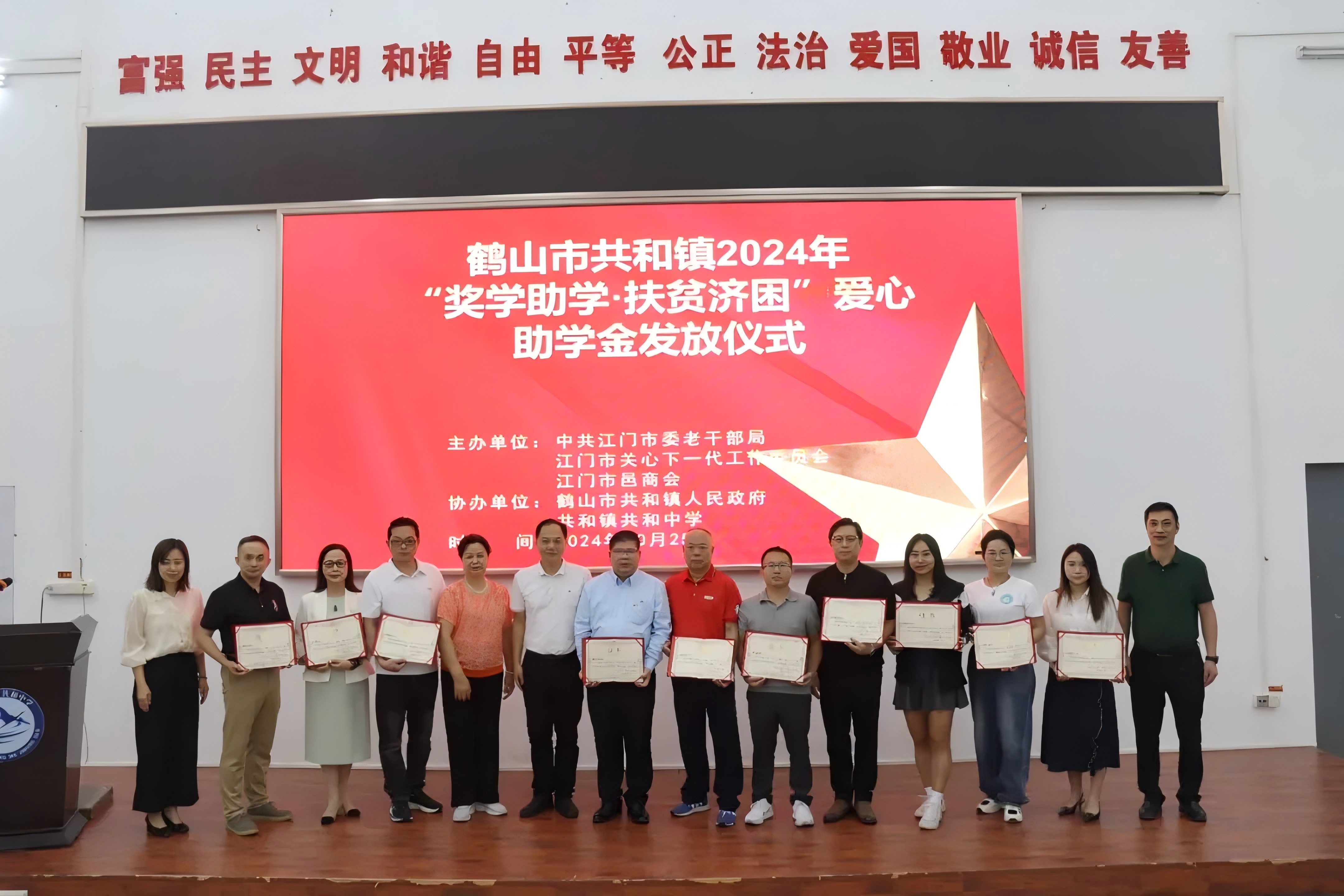 20241025日,江門市委老干部局、江門市關工委、共和鎮委鎮政府,攜手江門市邑商會,在共和中學舉行了“獎學助學·扶貧濟困”愛心助學金發放儀式,為我鎮優秀困難學子筑夢未來。這次活動讓我回想起自己當年小學初中求學時的情景,感慨萬千同時提升了我個人和《灣區華商》在公眾心目中的形象。這是一次愛心的傳遞,更是一次精神的洗禮,激發了廣大學生的學習熱情,為共和鎮教育事業的發展注入了新的動力。