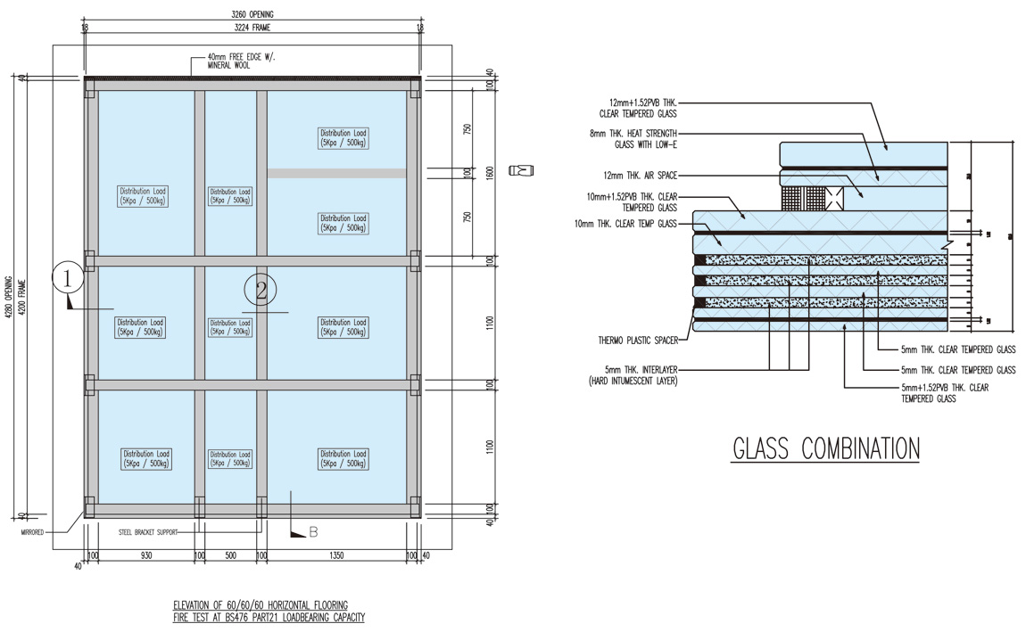 ★Testing of load-bearing fire-proof platform and ceiling glass